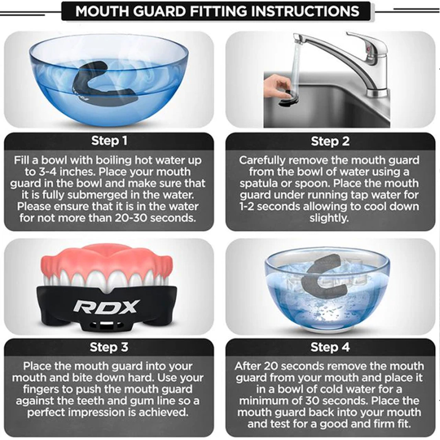 The RDX 3w Mouth Guard for adults in white black offers superior protection for your teeth and gums during intense sports activities. Designed with a triple-layer system, it provides enhanced shock absorption, durability, and a comfortable fit. Its durable material ensures long-lasting use, while the contoured shape promotes easy breathing and clear communication. Ideal for boxing, MMA, rugby, and other contact sports, this mouth guard helps reduce injury risk without compromising performance.
